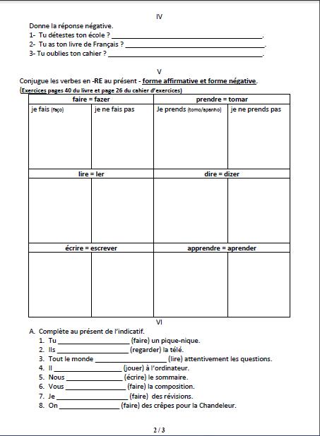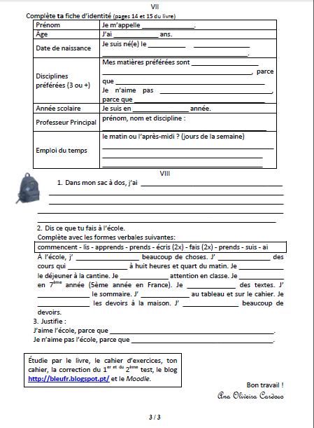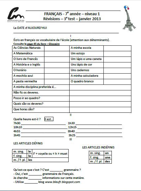 7ème année - FICHE DE RÉVISIONS POUR LE 3eTEST