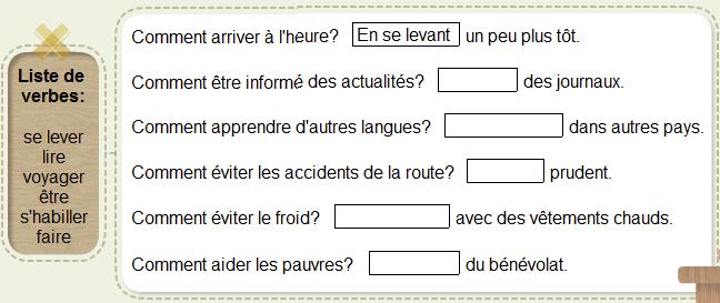 Récris les phrases en mettant au gérondif la forme verbale soulignée.